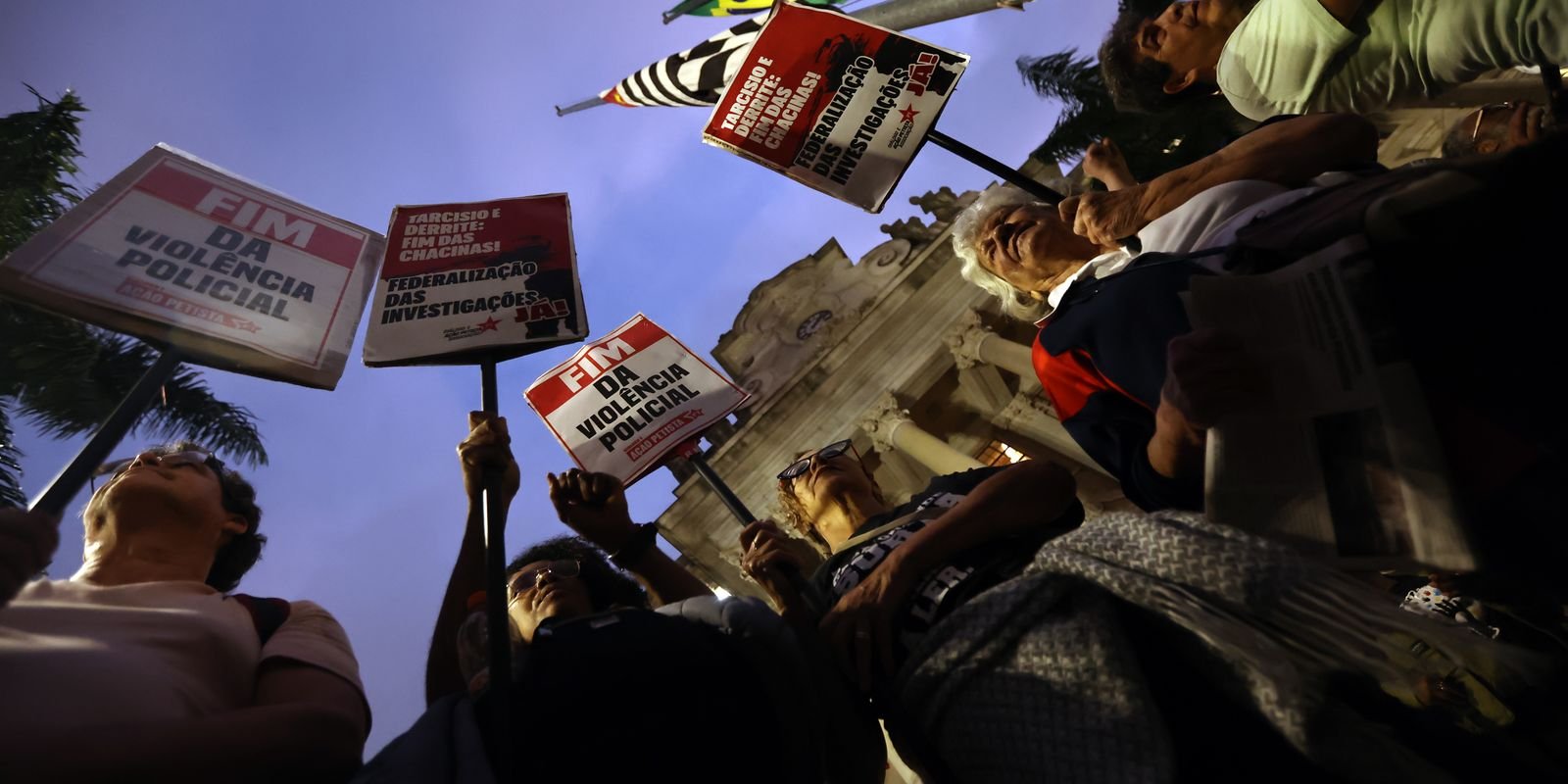 Na capital paulista, o ato (foto) reuniu cerca de 200 pessoas que protestaram contra a violência policial. Organizada pela Frente Povo Negro Vivo, que representa mais de 100 entidades, a manifestação passou pela Assembleia Legislativa de São Paulo (Alesp), a Faculdade de Direito da Universidade de São Paulo (USP) e encerrou em frente à Secretaria Estadual de Segurança Pública. Os manifestantes protestaram contra o governador Tarcísio de Freitas e o secretário de Segurança Pública, Guilherme Derrite, com protocolo de pedidos de impeachment na assembleia.